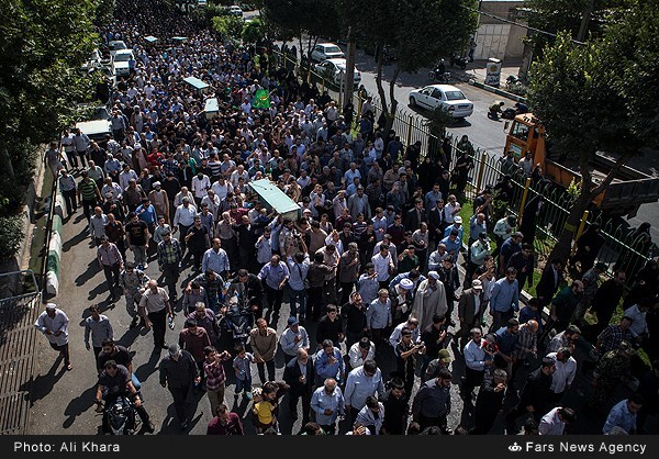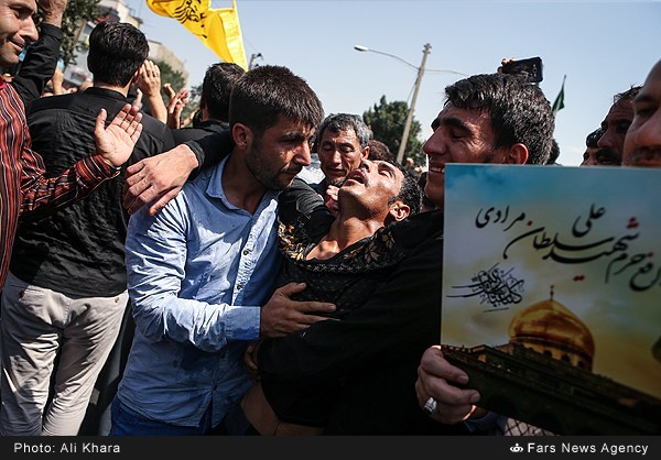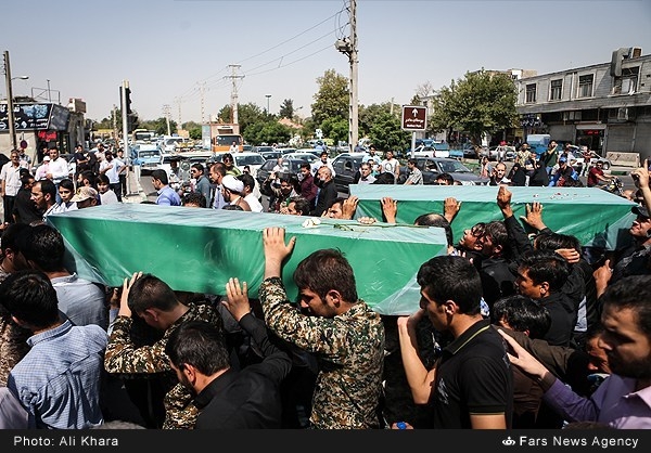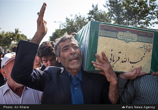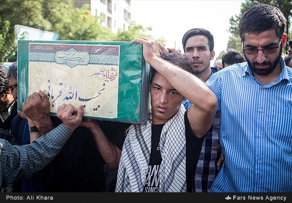 مراسم تشییع پیکر پنج تن از شهدای مطهر مدافع حرم حضرت زینب(س) تیپ فاطمیون صبح پنج شنبه سی و یکم تیر از میدان معلم در منطقه 18 تهران به سمت میدان الغدیر برگزار شد . شهیدان دلبر ابراهیمی، محمود عبدالهی، نجیب الله قربانی، سید اسحاق موسوی و حسن سلیمی در شهر حلب سوریه، توسط تکفیریها و تروریستها به شهادت رسیده اند.